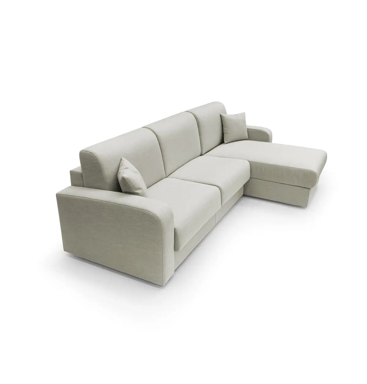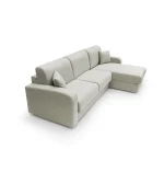 Lignes épurées et assise basse pour une silhouette minimaliste. Pieds en chêne massif naturel (option noyer disponible) qui soulèvent délicatement la structure, créant une illusion de légèreté. Disponible en 3 places (190 cm) ou méridienne intégrée pour un loft urbain.